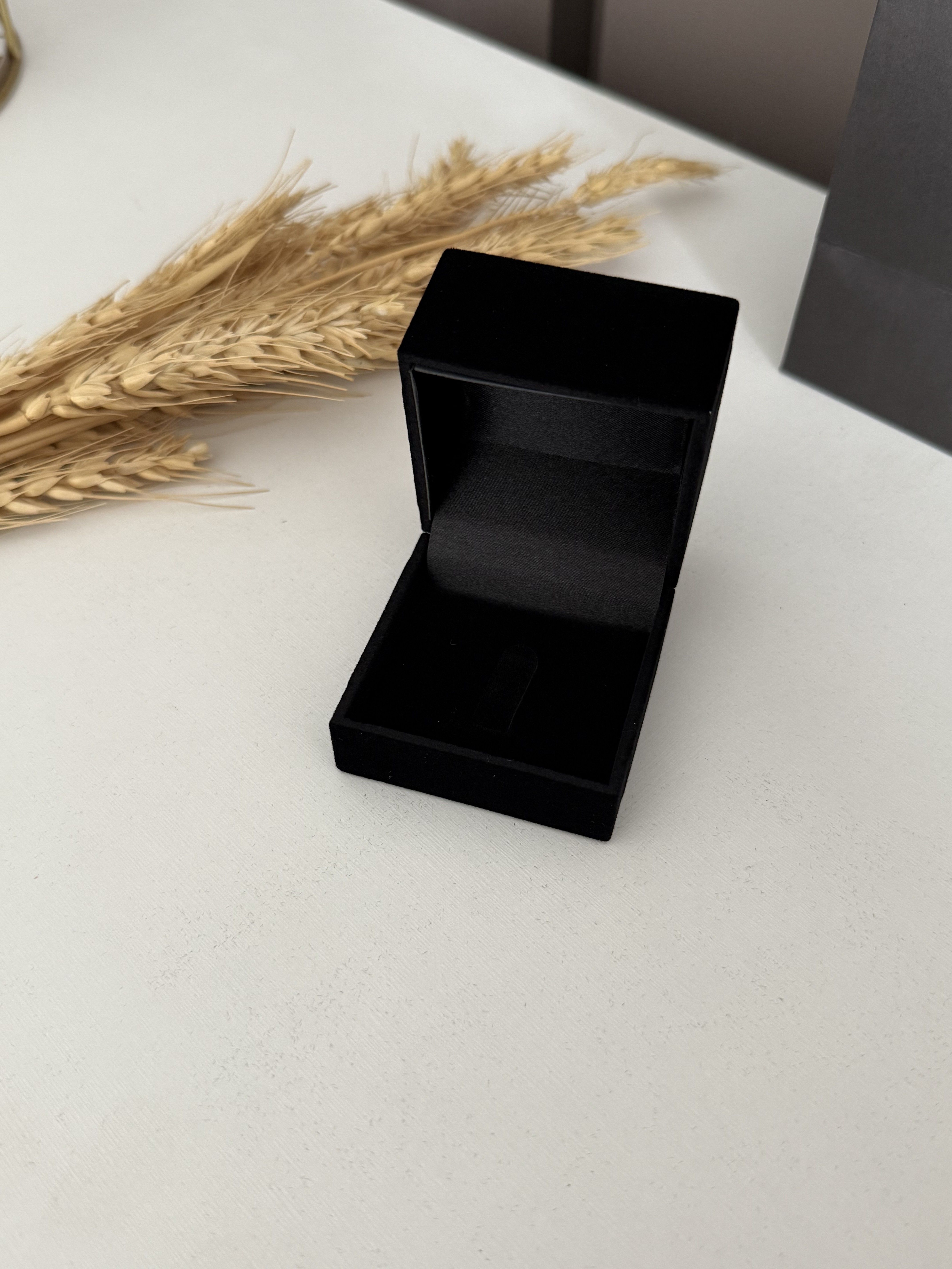 Caixa de veludo para um pedido de noivado ou anel com pedra alta.