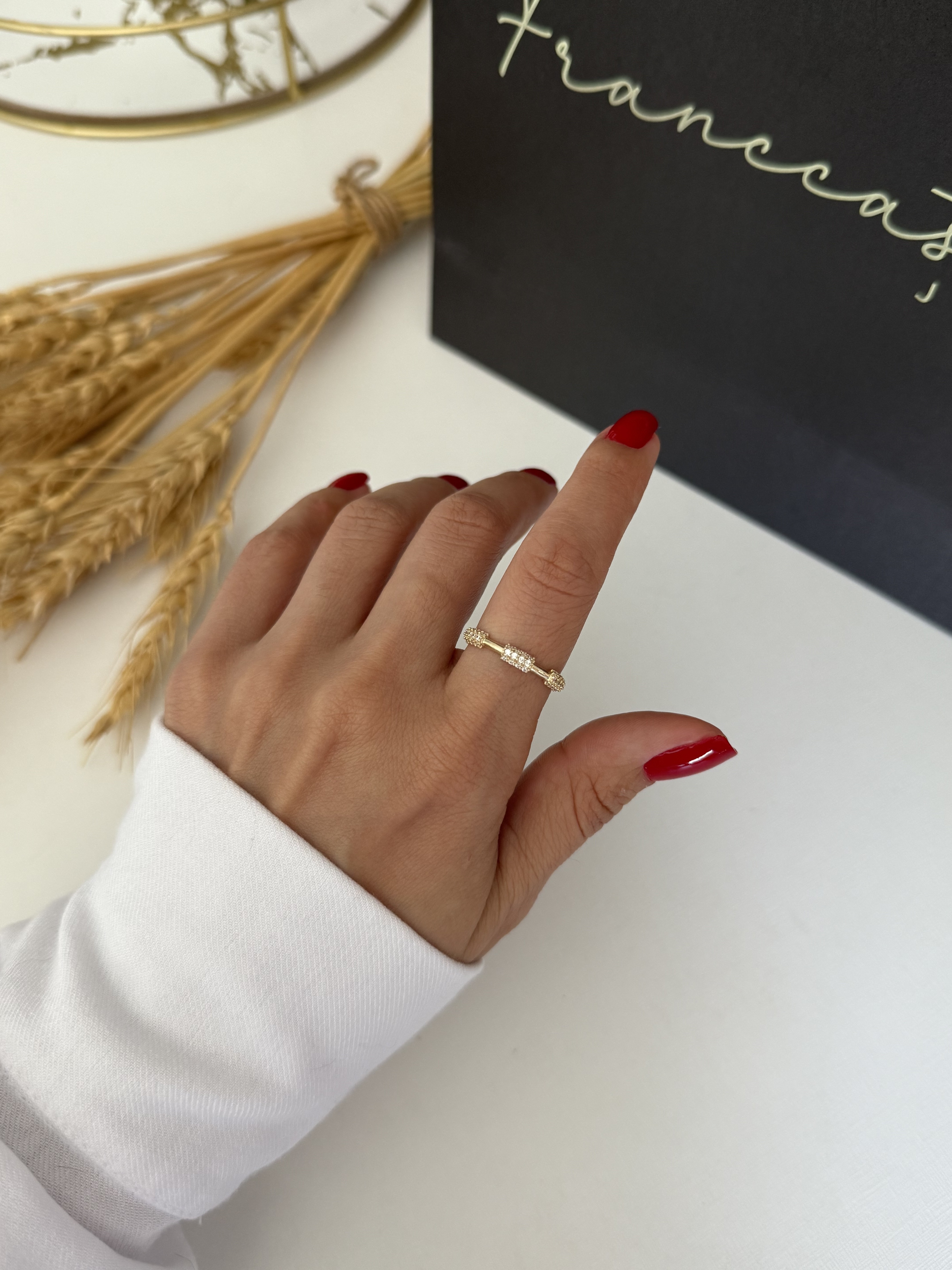 Anel aura com detalhes cravejados.