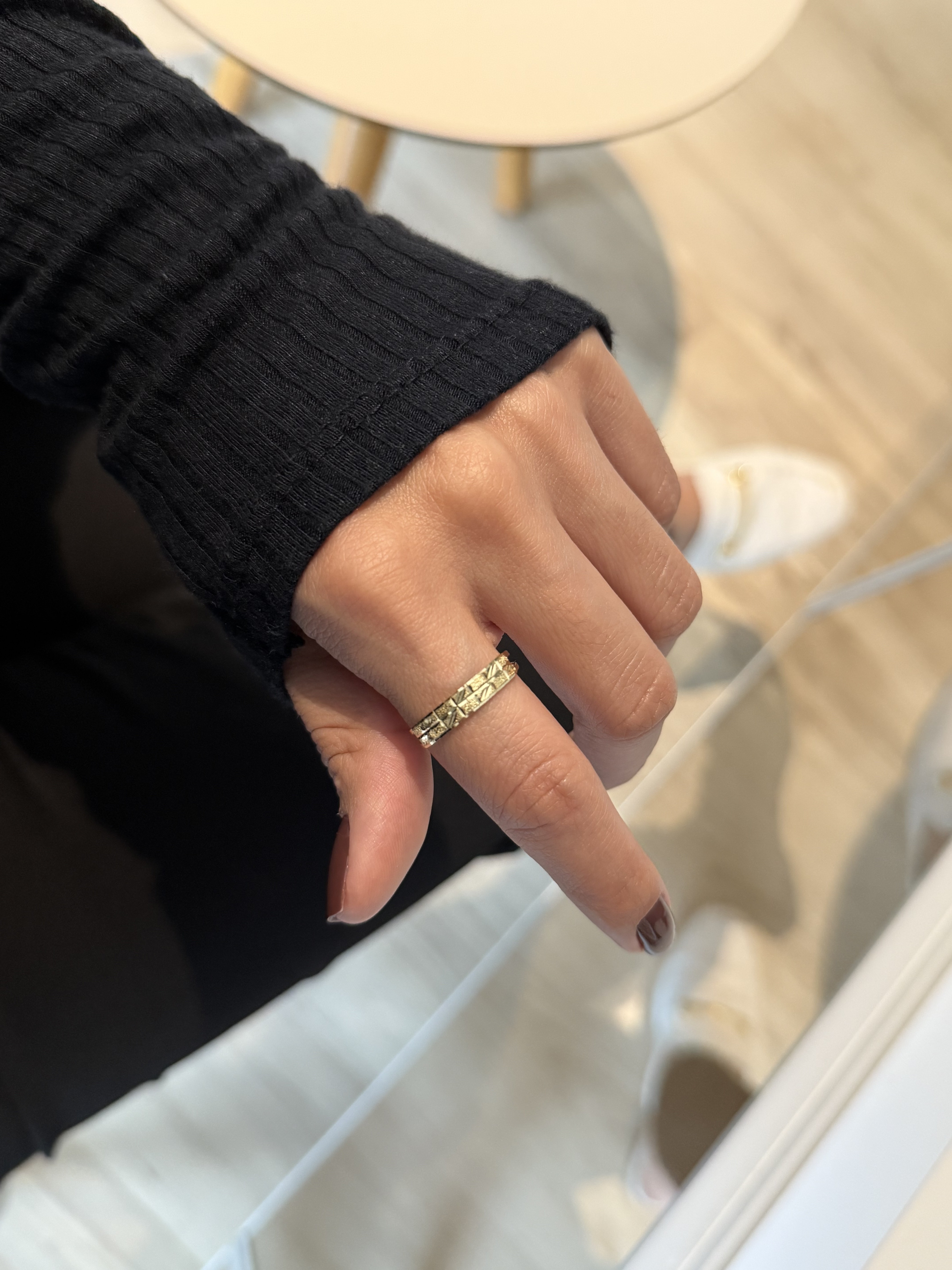 Anel essenza, delicado com leves texturas.