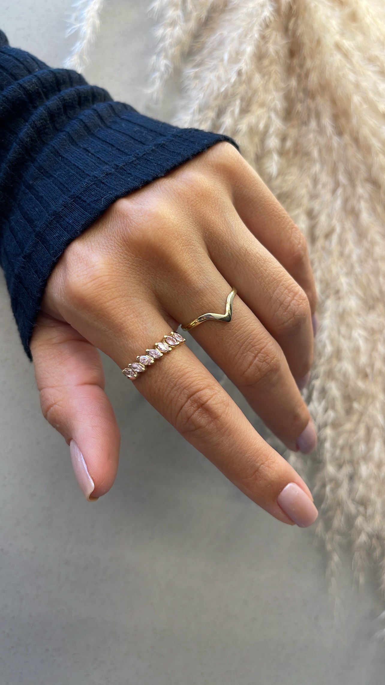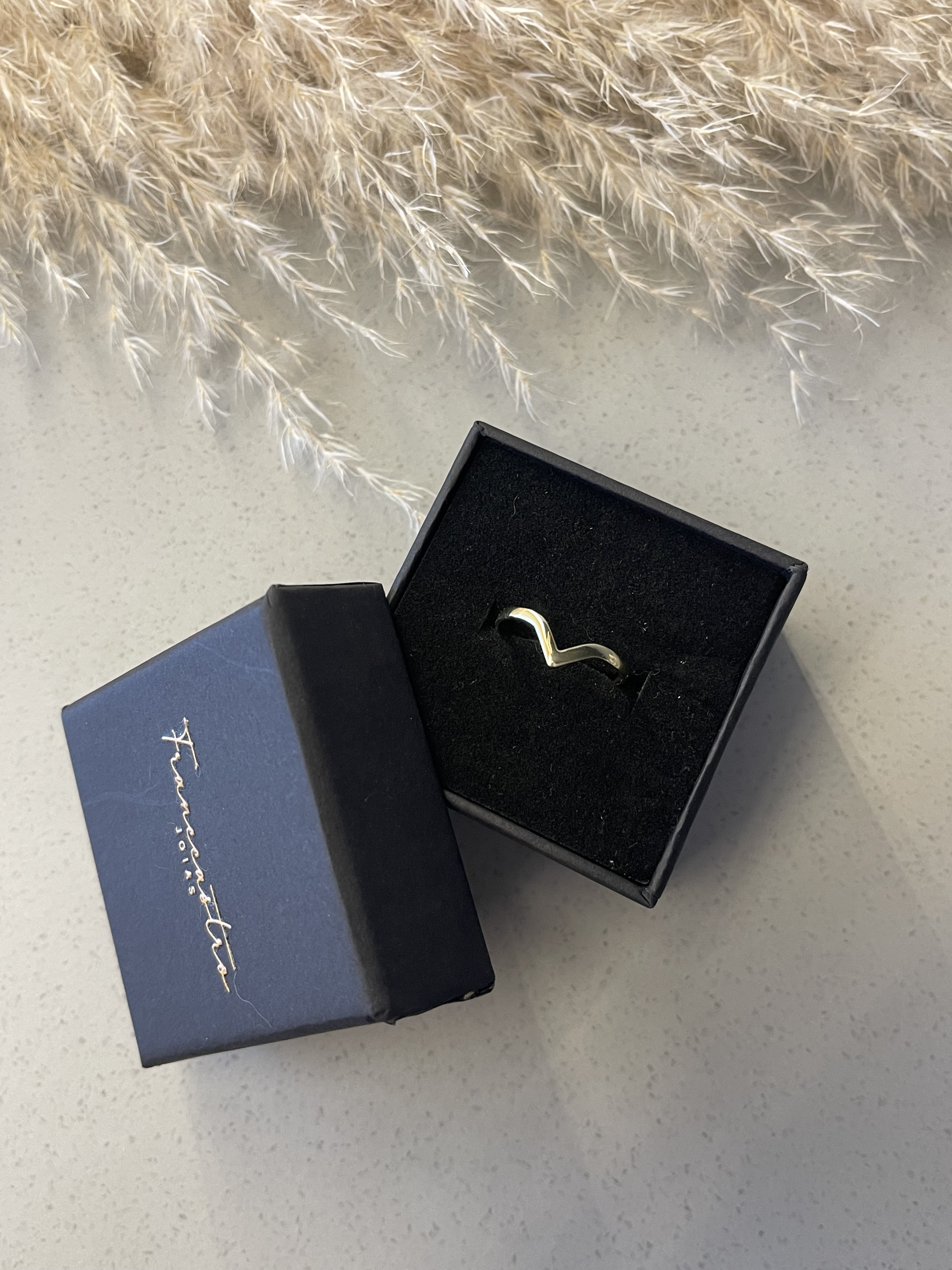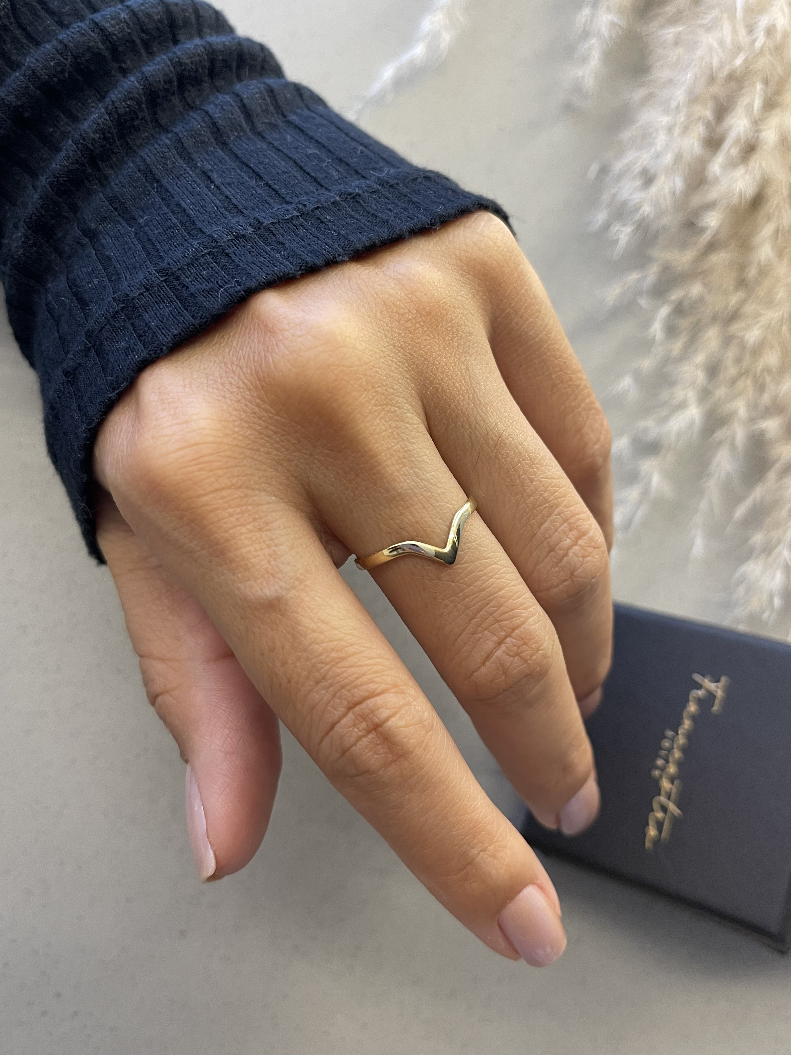 Anel minimalista com detalhe V.