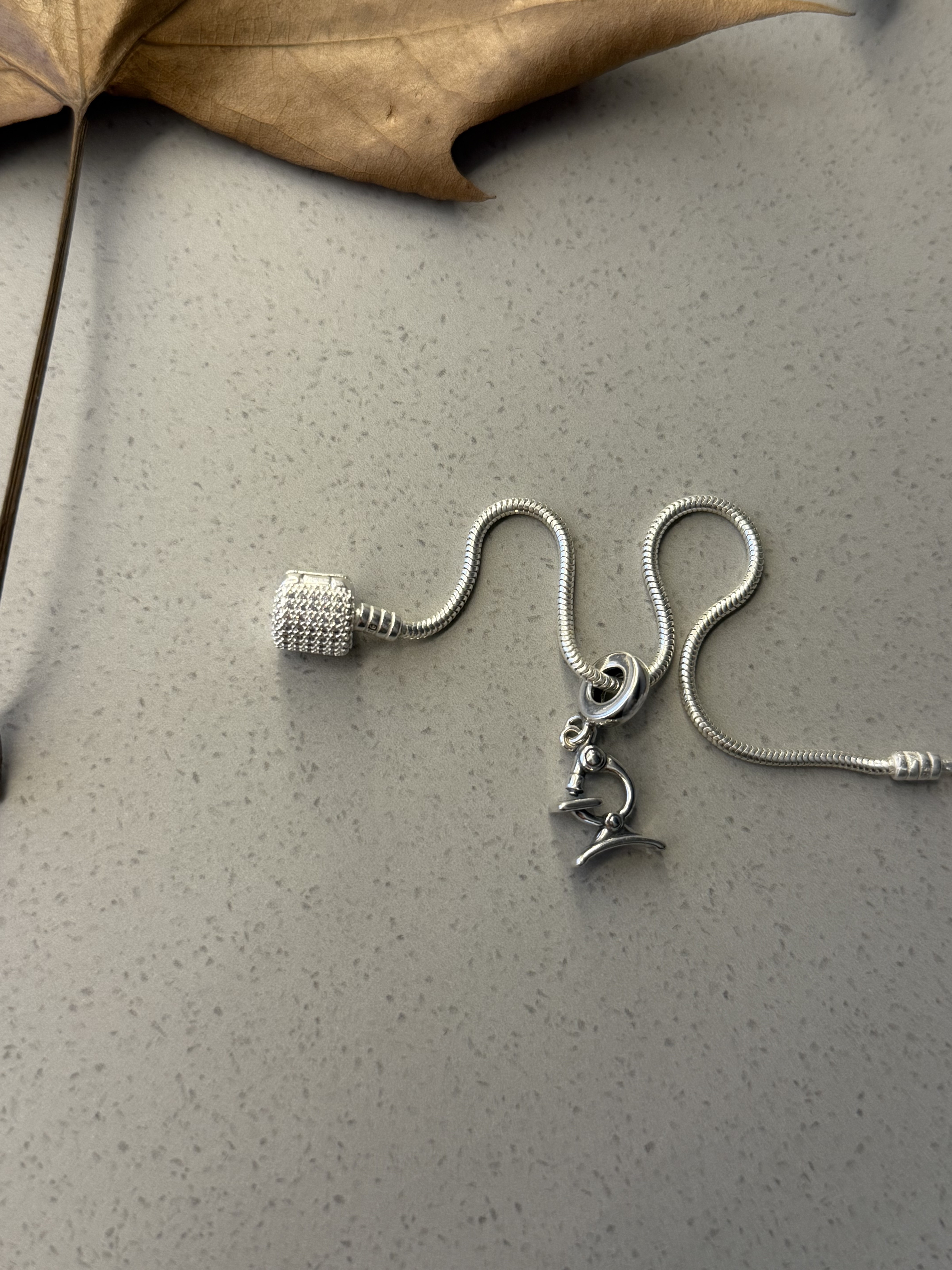 Berloque microscópio, uma linda joia para completar sua pulseira.
